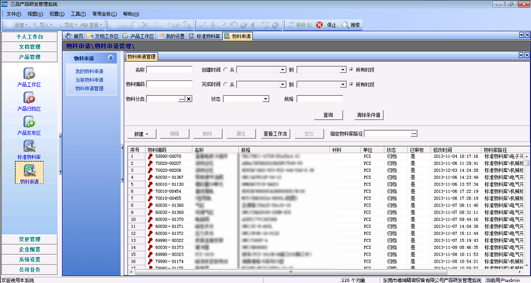 進一步,在三品PDM導(dǎo)入歷史數(shù)據(jù),建立了一個企業(yè)設(shè)計、工程、采購等部門都可以廣泛訪問的標準物料庫和零部件庫。設(shè)計人員從物料庫中可以非常方便地查詢和調(diào)用各種合規(guī)的標準物料,物料的狀態(tài)直接識別出這些物料是否能被重用。