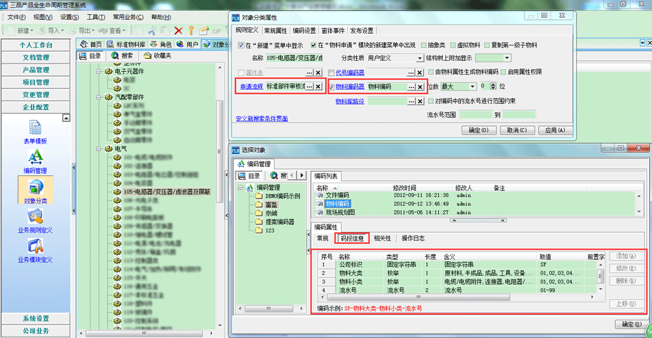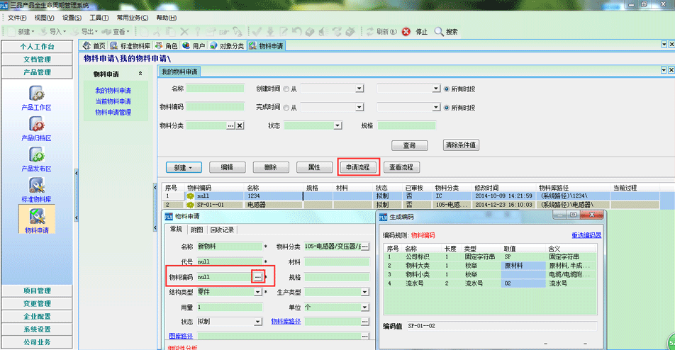 傲派的標準件種類繁多、數(shù)量龐大,三品軟件細致劃分不同種類的標準件并且綁定不同的編碼規(guī)則以及審核流程;當需要新增的標準件時,三品軟件通過【物料申請】模塊進行物料申請,并根據(jù)此類物料所綁定編碼器的編碼規(guī)則,自動編制具有唯一性的物料編碼,創(chuàng)建新物料完成之后,可便捷的啟動新物料所需的審核流程,然后自動歸檔存庫。