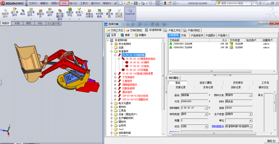 在建立了三品系統(tǒng)標準物料庫之后,傲派技術部門工程師研發(fā)設計時,可以通過solidworks登錄三品PLM在線菜單,實現(xiàn)直接借用三品系統(tǒng)標準物料庫中的標準件物料,分布清晰且排列規(guī)范的標準件庫,可快速找到所需的標準件,對于提高工程師研發(fā)設計出圖率以及所出圖紙的規(guī)范化都有很大的提升。