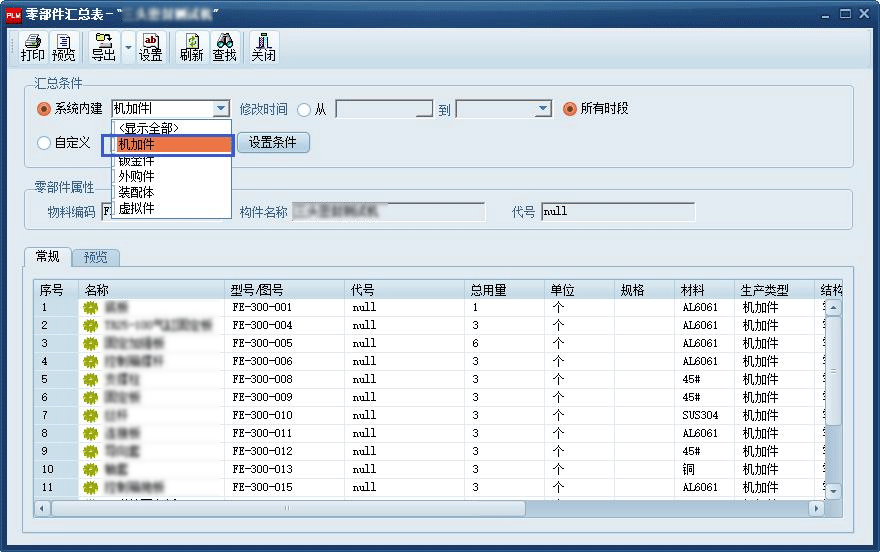 而各類(lèi)BOM清單則通過(guò)產(chǎn)品的裝配結(jié)構(gòu)依據(jù)匯總條件快速匯總與輸出(Excel電子表格),如下圖所示: