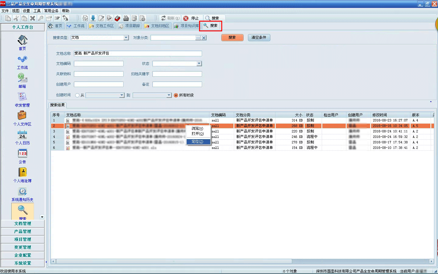 目前,企業(yè)各用戶可以按需要在PLM系統(tǒng)中快速查找歷史項(xiàng)目及項(xiàng)目文檔資料,快速借用,業(yè)務(wù)效率大大提高。