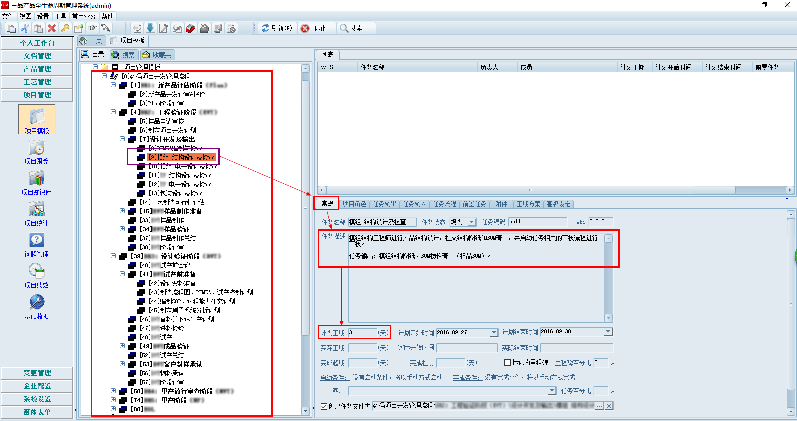 貼合國(guó)顯科技APQP、TS16949開發(fā)管理要求在PLM系統(tǒng)中規(guī)范建立各類項(xiàng)目開發(fā)管理流程模板(階段任務(wù)、子任務(wù)、任務(wù)描述、任務(wù)項(xiàng)目角色、初始工期、任務(wù)輸出、任務(wù)輸入、任務(wù)相關(guān)流程、各任務(wù)前后置關(guān)系、啟動(dòng)條件和完成條件、里程碑設(shè)置等等),規(guī)范了項(xiàng)目開發(fā)管理流程,同時(shí)也滿足國(guó)內(nèi)外客戶的審廠標(biāo)準(zhǔn)。