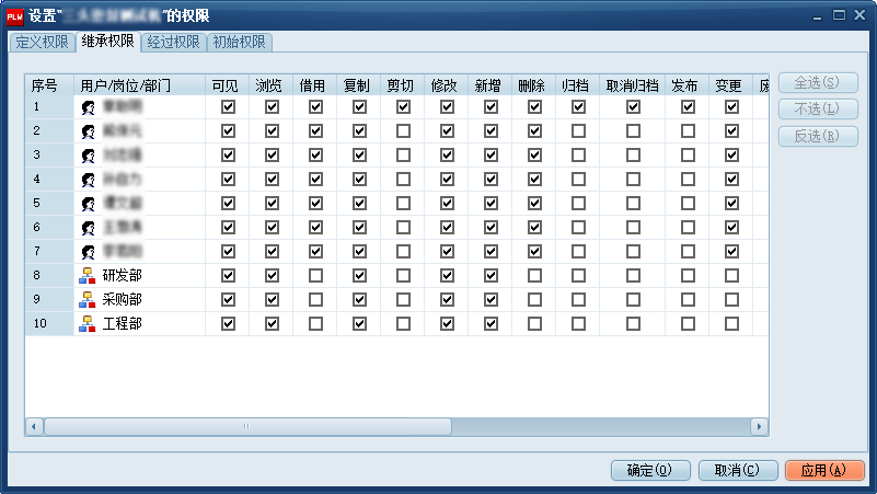 國(guó)顯科技在三品PLM系統(tǒng)中建立了一套細(xì)致的權(quán)限管理機(jī)制,規(guī)范管理各部門、各用戶在系統(tǒng)中對(duì)資料的查閱、復(fù)制、修改、刪除、打印、導(dǎo)出等權(quán)限,且實(shí)時(shí)記錄各項(xiàng)操作記錄,便于追溯查看。