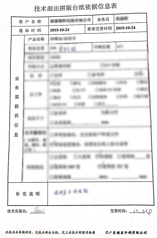 將業(yè)務部門根據(jù)客戶需求填寫的拼版臺紙依據(jù)表,通過系統(tǒng)表單+流程的形式執(zhí)行