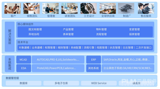 1. 三品PDM:內置20余套制造業模板,支持本地和云部署,45天可上線,以快速交付和低TCO(總體擁有成本)著稱。