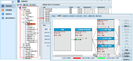 5、流程啟動(dòng)與流轉(zhuǎn):在“創(chuàng)建工作流”對(duì)話框中選擇預(yù)設(shè)的“設(shè)計(jì)審批流程”,單擊【確認(rèn)】。在“新建工作流”對(duì)話框中,單擊【應(yīng)用】,切換到“流程圖”標(biāo)簽頁(yè),確認(rèn)流程步驟無(wú)誤后,單擊【啟動(dòng)】按鈕。審批流程即按預(yù)設(shè)的箭頭順序(如:提交->初審->專業(yè)審->綜合審->批準(zhǔn))自動(dòng)流轉(zhuǎn)執(zhí)行。