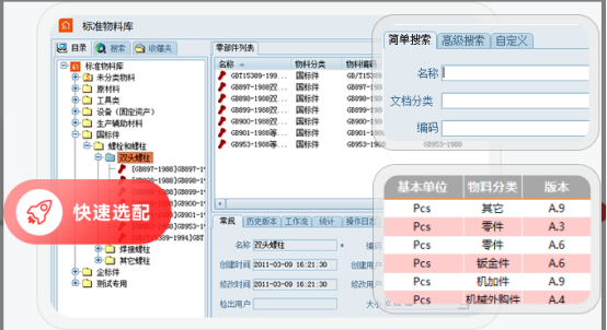2、物料管理:針對物料標(biāo)準(zhǔn)化低、新物料隨意增長等痛點,三品PLM系統(tǒng)建立企業(yè)級標(biāo)準(zhǔn)物料庫,支持多維度分類(如自制/外購、結(jié)構(gòu)件/電氣件)。通過層級編碼和模糊搜索提升檢索效率,并與歷史圖紙自動關(guān)聯(lián)。新增物料需經(jīng)申請流程審核,系統(tǒng)自動比對歷史數(shù)據(jù)避免重復(fù),確保物料編碼和屬性的唯一性。
