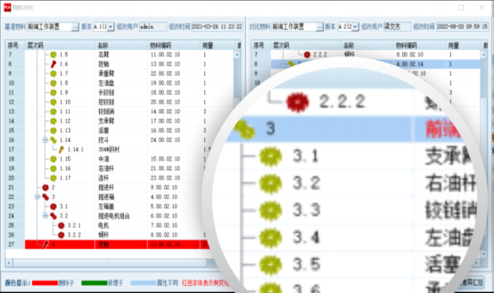 系統(tǒng)支持BOM的快速?gòu)?fù)制、比較和合并。用戶可通過(guò)版本號(hào)與版次號(hào)追溯BOM的歷史變更,并通過(guò)差異分析工具定位不同版本之間的具體差異。