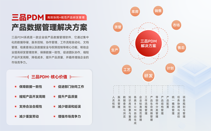 PDM產(chǎn)品數(shù)據(jù)管理系統(tǒng)是制造業(yè)和工程領(lǐng)域中用于管理產(chǎn)品全生命周期數(shù)據(jù)的核心信息化平臺(tái)。它通過(guò)集中存儲(chǔ)、組織和控制與產(chǎn)品相關(guān)的所有信息,確保數(shù)據(jù)的一致性、安全性和可追溯性。以下將詳細(xì)闡述PDM系統(tǒng)的常見功能模塊及其技術(shù)作用。