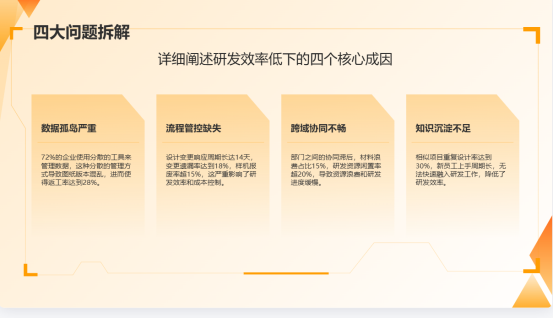 工業(yè)自動(dòng)化設(shè)備研發(fā)涉及機(jī)械結(jié)構(gòu)、電氣控制、軟件算法等多領(lǐng)域協(xié)同,傳統(tǒng)管理模式下的痛點(diǎn)具有顯著行業(yè)特殊性,具體可歸結(jié)為四大核心問題:
