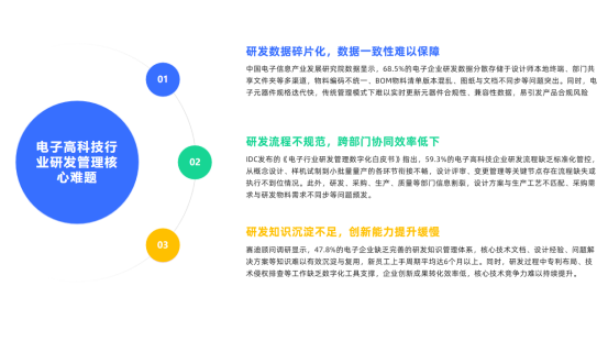 電子高科技行業(yè)數(shù)字化轉(zhuǎn)型的核心是研發(fā)數(shù)字化,三品PLM系統(tǒng)通過破解研發(fā)管理數(shù)據(jù)碎片化、流程不規(guī)范、協(xié)同效率低等難題,構(gòu)建全流程數(shù)字化研發(fā)管理體系,為企業(yè)提升研發(fā)效率、降低研發(fā)成本、增強(qiáng)創(chuàng)新能力提供有力支撐。
