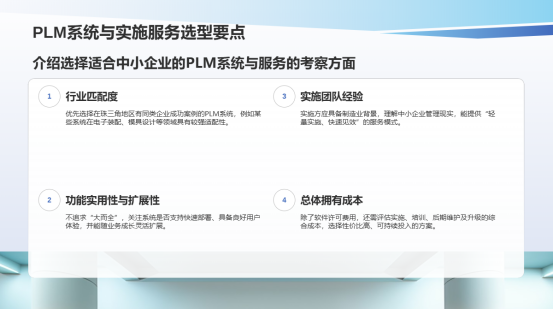 Q4:如何選擇適合珠三角中小企業(yè)的PLM系統(tǒng)與實施服務(wù)?