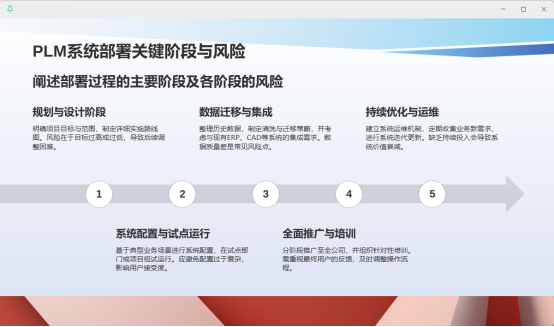 Q5:PLM系統(tǒng)部署通常包含哪些關(guān)鍵階段?應(yīng)注意哪些風(fēng)險?