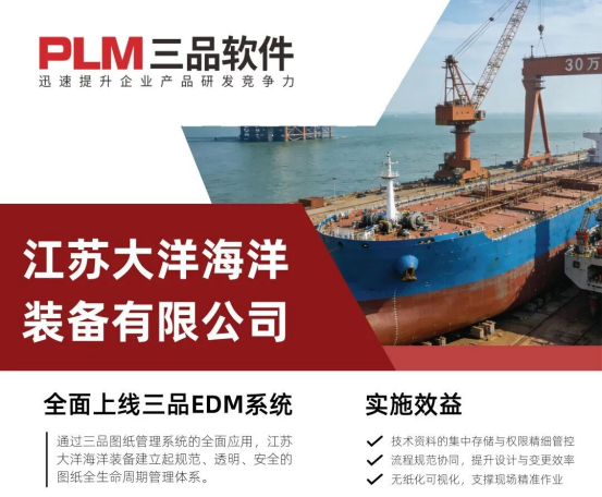 通過在線審批流程與版本管理功能,杜絕了圖紙誤用風險;可視化瀏覽與無紙化發(fā)布進一步支持了車間現(xiàn)場的高效作業(yè),為“殼舾涂一體化”制造模式提供了堅實的數(shù)字化基礎。通過三品圖紙管理系統(tǒng)的全面應用,江蘇大洋海洋裝備建立起規(guī)范、透明、安全的圖紙全生命周期管理體系。