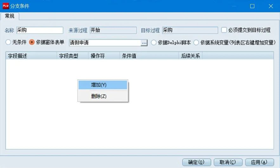 完成后,在分支條件下方空白處右鍵,選擇【增加】