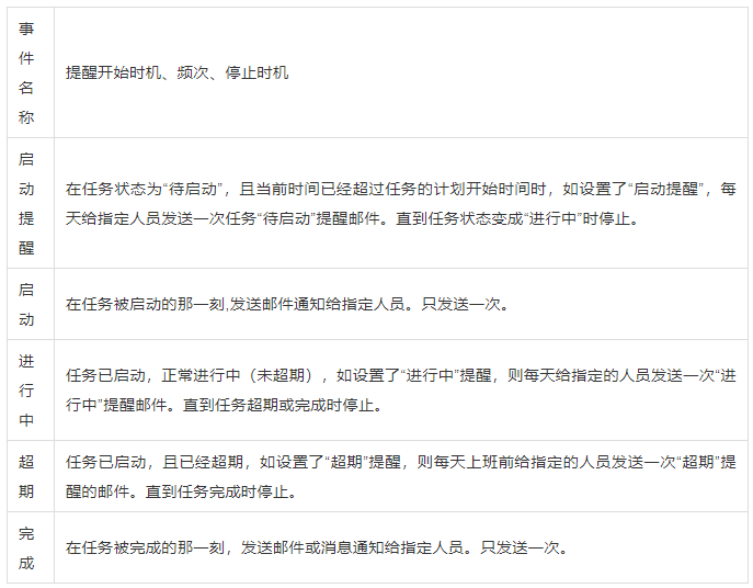 對各類事件的提醒開始時機、頻次、停止時機匯總如下表: