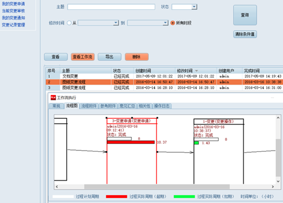 在三品PLM中,管理者不僅可以按照條件繼續查詢變更流程,還可以進行過程追溯和變更統計,從而實現對整個工程變更過程的有效管控。