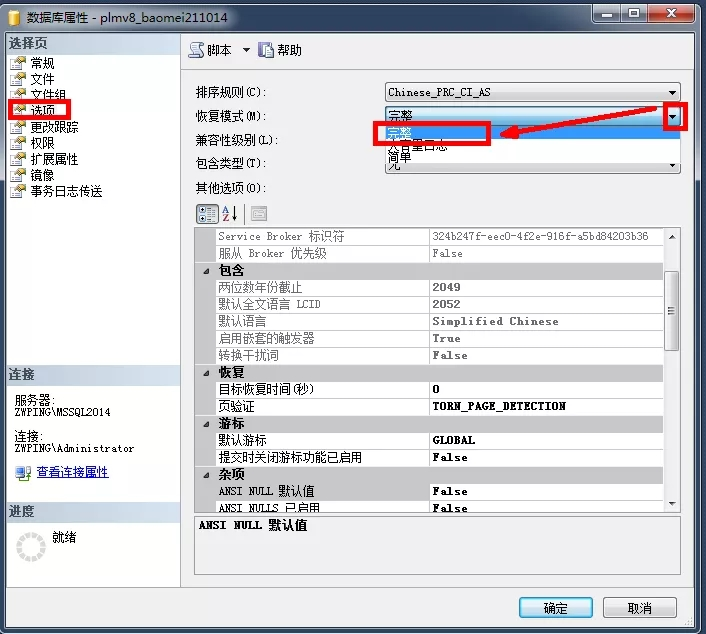 04:修改數據庫的恢復模式為“完整”模式