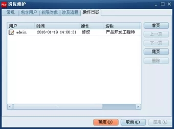 【操作日志】用于記錄該用戶在崗位維護屬性里的操作、操作時間、操作對象、操作結果和用戶IP。